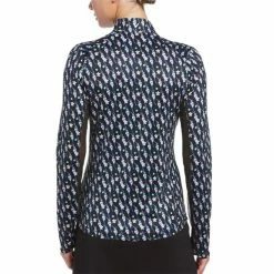 Callaway Ladies Long Sleeve Sun Protection Hummingbird Print Polo Shirt Caviar (002)