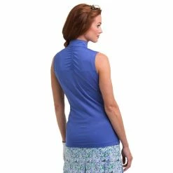 EPNY Ladies Sleeveless Convertible Zip Mock Polo Shirt White