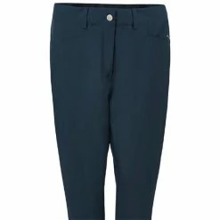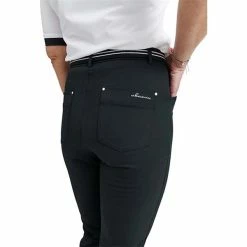 Elite capri is made of a functional material in 4-way stretch that is also very breathable. The fabric has drycool and wicking effects. Front zipper, two front and two back pockets. Belt loops around waist allows a belt. Feminine fit that works just as well on course as off course.