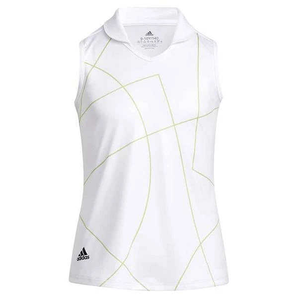 adidas Junior – Girls Sleeveless Golf Polo Shirt Pulse Lime – White