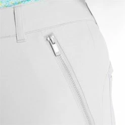 Finely tailored ladies golf capri trousers in a versatile solid colour provide an elegant and flattering silhouette in a smooth, stretch fabric that’s comfortable and extremely breathable. The inside waist gripper tape holds tucked in shirt in place. Front zippered pockets provide secure storage.