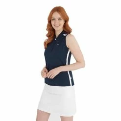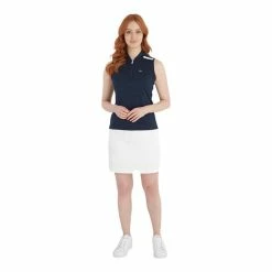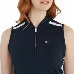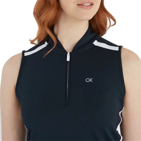 Calvin Klein Golf Ladies Chenang Sleeveless Polo Shirt Navy – White