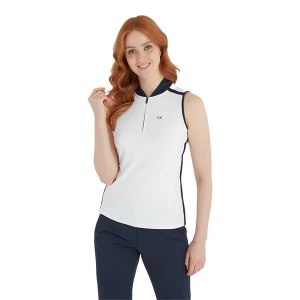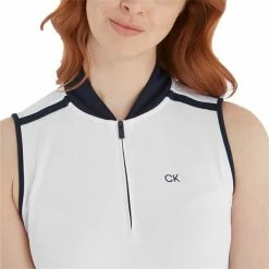 Calvin Klein Golf Ladies Chenang Sleeveless Polo Shirt White – Navy
