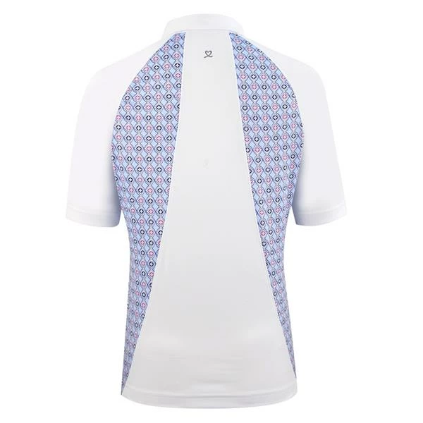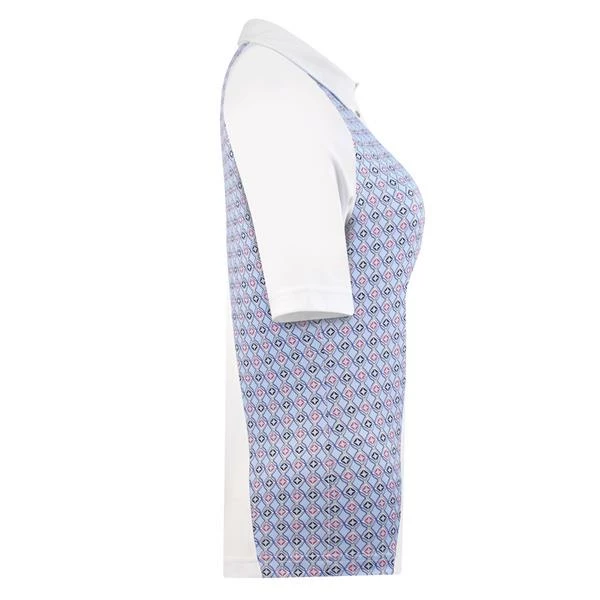 The Sue Half Sleeve Polo Shirt is designed for the woman who wants to be sporty on the golf course, in one of our finest fabric qualities. A polo shirt that can easily be combined with a pair of Magic Pants or Lyric skorts. Snap placket at the neckline make it easy to open. Attractive argyle print color blocking at the sides, collar and back. The shirt is made of our breathable, moisture-wicking Quick Dry material.