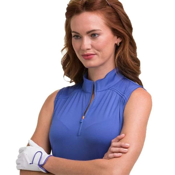 EPNY Ladies Sleeveless Zip Mock With Cinched Yoke Bluebelle Multi