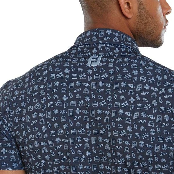 FootJoy Gents Travel Print Lisle Polo Shirt Navy – Blue