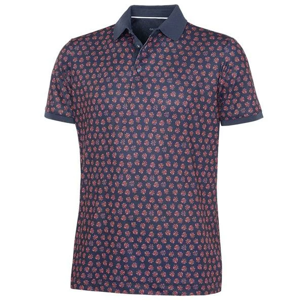 Murphy is a breathable short sleeve polo shirt with an allover floral print and contrasting collar, placket, and cuffs. Galvin Green’s VENTIL8™ PLUS golf shirt range is a high tech collection of performance driven shirts designed to be functional and stylish. The Murphy shirt is made from an extremely breathable fabric that is quick dry, ensuring you are comfortable on the golf course when it’s hot outside.