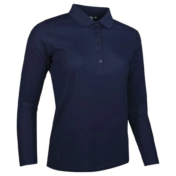 Glenmuir Ladies Misha Long Sleeve Performance Pique Golf Polo Shirt Navy