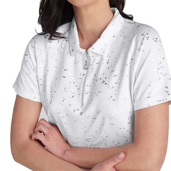 Introduce a little touch of sparkle to your style with Green Lambs Katlynne Polo highlighted with scattered silver foil print for a truly unique look. Sleek zip neck and raglan style sleeves make for a flattering shape and exceptional comfort. Made from recycled polyester from our Planet Luxury Fabric series so you are contributing a greener environment.