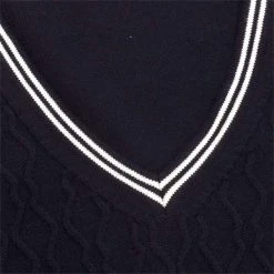For a chic yet practical addition to your golfing wardrobe this season Green Lamb’s Kayley V-neck sweater fits the bill perfectly with its attractive linear knit design and flattering neckline. The rib knit cuffs and hem ensures a snug and comfortable fit. 100% cotton for a sumptuous feel.