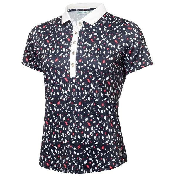 Green Lamb Ladies Melanie Printed Polo Shirt Leaf Print
