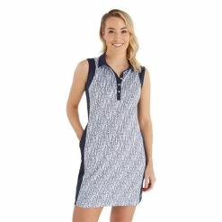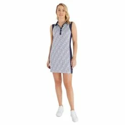 Fresh, contemporary styling is to the fore in the Mercy printed sleeveless dress from Green Lamb making sure you make the smart fashion move on the course this season. Side solid colour panels help to define the waistline and provide a flattering silhouette. Made from a high performing fabric with plenty of stretch to ensure a comfortable fit throughout your round.