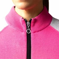 Sunderland Ladies Zonda Zip Neck Lightweight Lined Cotton Sweater Solar Pink – Silver Marl – Black