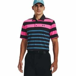 Under Armour Gents Playoff 3.0 Stripe Polo Shirt Black – Rebel Pink (002)