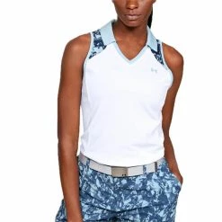 Under Armour Ladies Zinger Sleeveless Blocked Polo Shirt White – Blue 101